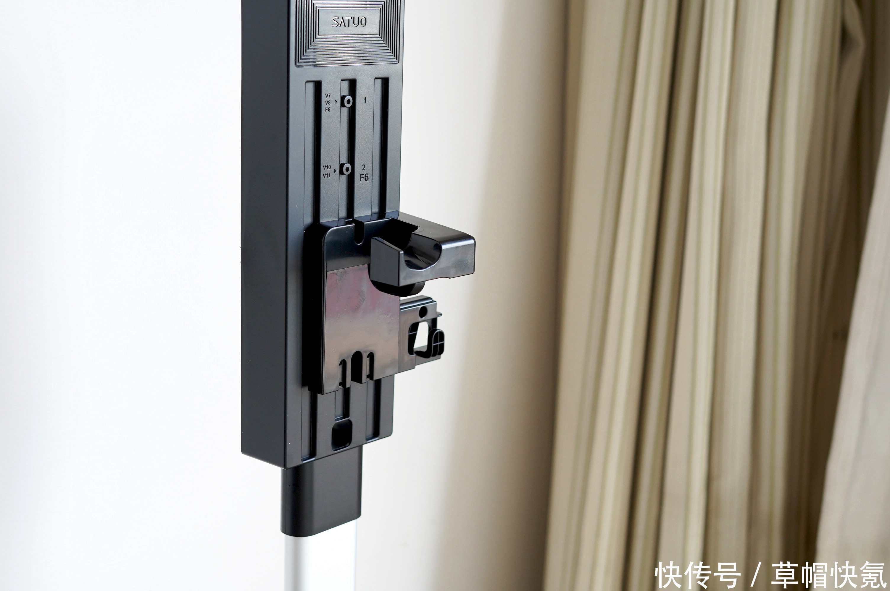 在结构设计方面,洒拖F6集成了了大量的模块化配件,实现快拆快装的使用,主要的从主机,吸尘杆,拖地头的这三部件可以简单一卡一扣就可以轻松使用,这个模块化的设计也是目前行业主要使用的的结构和设计。不仅如此,从主机的尘杯、手柄再到电池、以及过滤网部件都是卡扣结构实现快速更换使用。模块化设计最大的特点就是后期维护以及维修方面就方便多了,整体来看洒拖F6在设计方面是很用心的。